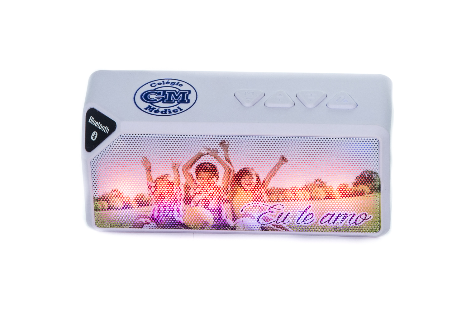 Caixa de som multimídia, rádio FM, alto falante de 80db, bluetooth 2.1, entrada USB, entrada micro SD, função atende chamadas, microfone integrado para chamadas de 10 a 15 metros.